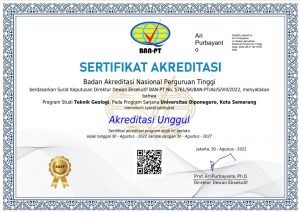 Bulan Agustus 2022 diakhiri dengan datangnya kabar gembira di lingkungan Departemen Teknik Geologi Universitas Diponegoro, yaitu dinyatakannya program studi ini meraih Akreditasi Unggul dari Badan