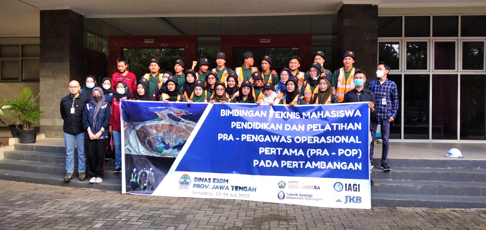 In order to provide technical knowledge for graduates needed in the professional, the Department of Geological Engineering, Faculty of Engineering, Universitas Diponegoro provide education and training for students. Thanks to the facilities from the Department of Energy and Mineral Resources of Central Java Province for Fiscal Year 2022, the Pre-First Operational Supervisor Training (Pre-POP) was held for our students on 12-16 July 2022.