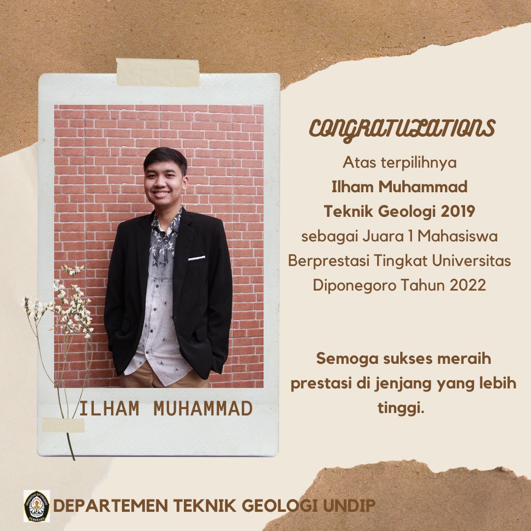 Ilham Muhammad, mahasiswa Teknik Geologi Universitas Diponegoro angkatan 2019, telah berhasil terpilih sebagai juara 1 dalam Pemilihan Mahasiswa Berprestasi (PILMAPRES) Tahun 2022 di tingkat universitas. Setelah sebelumnya terpilih mewakili Fakultas Teknik, Ilham berhasil menyingkirkan kompetitor dari fakultas lainnya dan menjadi juara. Peringkat kedua dan ketiga disusul oleh perwakilan dari Fakultas Perikanan dan Ilmu Kelautan dan Fakultas Ekonomika dan Bisnis.