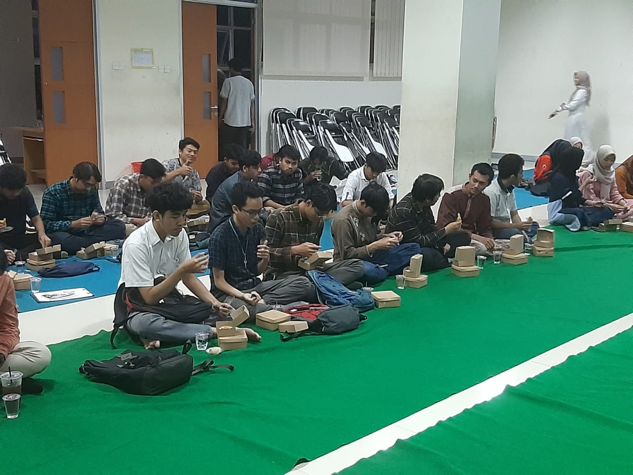 Mendekati waktu berbuka puasa, acara ditutup dengan doa bersama serta pembagian takjil dari panitia yang disediakan sejumlah 100 porsi. Buka puasa berlangsung hangat, sejenak para mahasiswa berkumpul dalam suasana kekeluargaan Ramadhan yang membawa lebih dekat satu sama lain.