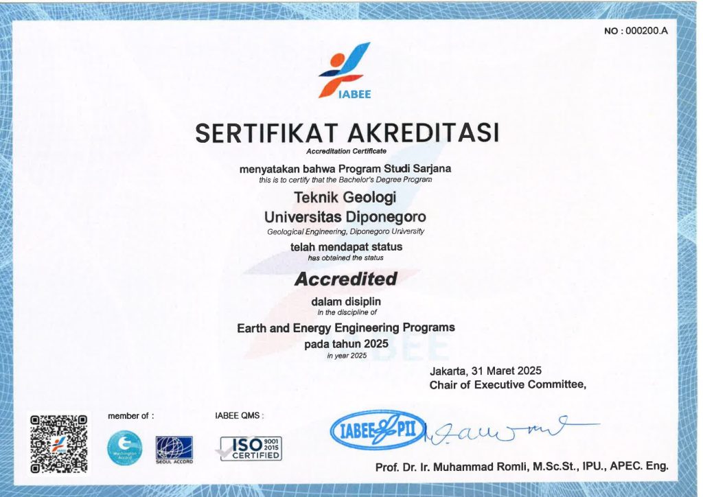 Berikut sertifikat akreditasi IABEE Program Studi Teknik Geologi: Klik untuk mengunduh.